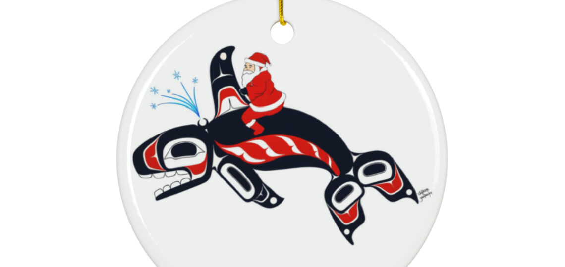Native Orca and Santa Christmas Ornament, 1-Pack
